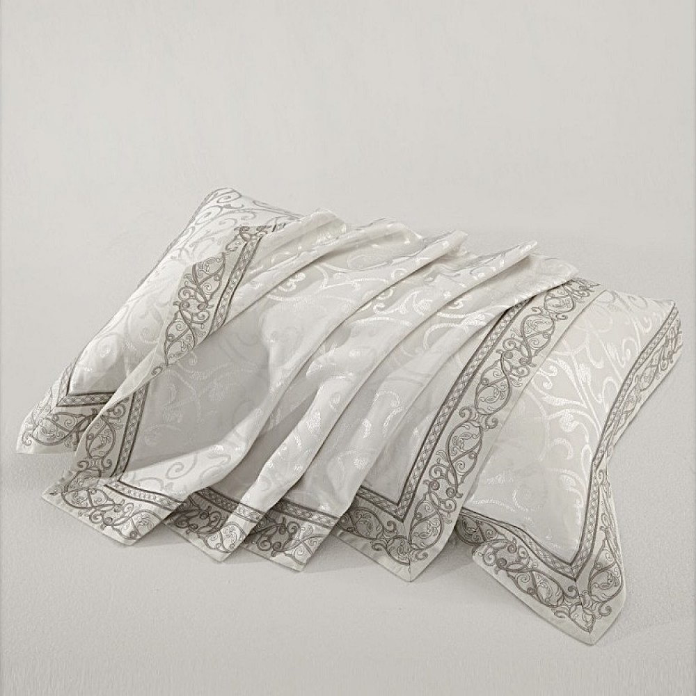 Постельное белье «Perla Grigia» с вышивкой (евро; жаккардовый сатин: 45% хлопок, 55% вискоза / сатин: 100% хлопок; арт. 591N-4)