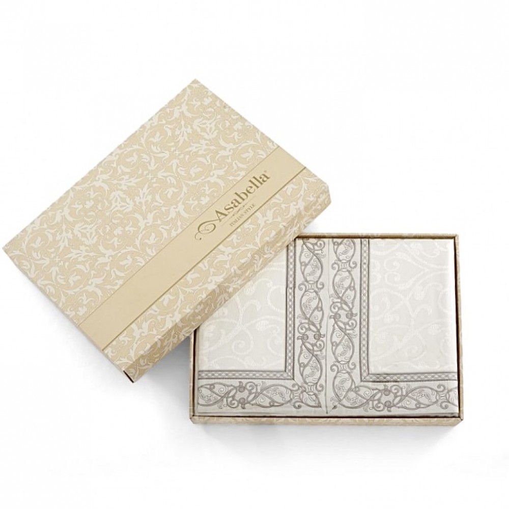 Внешняя сторона пододеяльников и наволочек выполнена из жаккардового сатина в жемчужно-сером оттенке, обратная сторона и простыни из однотонного сатина в серо-бежевом оттенке. Наволочки выполнены в дизайне «Оксфорд», с трех сторон декорированы «ушками», закрываются методом запаха. Пододеяльники декорированы такими же «ушками» с трех сторон. Вход в пододеяльники расположен внизу на скрытой молнии. Внутри пододеяльников предусмотрены специальные тесемочки для фиксации одеяла (на одеяле должны быть ответные петли). Эта небольшая деталь сделает использование постельного белья еще комфортнее: одеяло не сбивается в пододеяльнике, и заправлять его становится гораздо удобнее. Простыни в комплектах свободные (прямые). Упакованы комплекты в подарочные коробки.