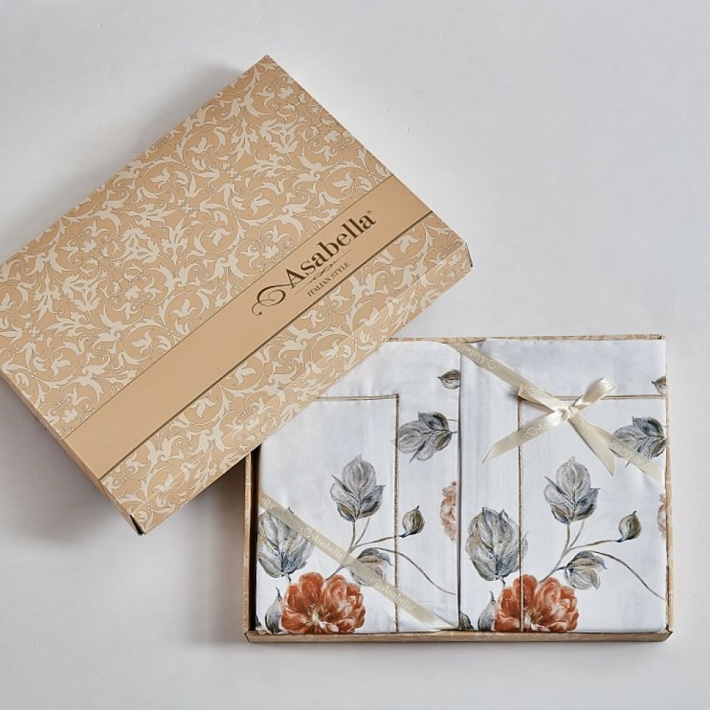 Пододеяльники декорированы "ушками" с трех сторон. Закрываются на скрытую молнию, расположенную внизу пододеяльника. Внутри пододеяльников предусмотрены специальные тесемочки для фиксации одеяла (на одеяле должны быть ответные петли). Эта небольшая деталь сделает использование постельного белья еще комфортнее: одеяло не сбивается в пододеяльнике, и заправлять его становится гораздо удобнее. Наволочки в размере 50х70 см выполнены в оксфордском дизайне - с "ушками" с трех сторон. "Ушки" наволочек и пододеяльников декорированы атласной строчкой. Наволочки в размере 70х70 см выполнены в классическом дизайне. Все наволочки закрываются методом запаха. Простыня в комплекте свободная (прямая). Комплекты упакованы в подарочную коробку.