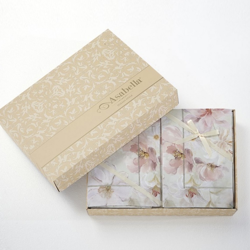 Пододеяльники декорированы "ушками" с трех сторон. Закрываются на скрытую молнию, расположенную внизу пододеяльника. Внутри пододеяльников предусмотрены специальные тесемочки для фиксации одеяла (на одеяле должны быть ответные петли). Эта небольшая деталь сделает использование постельного белья еще комфортнее: одеяло не сбивается в пододеяльнике, и заправлять его становится гораздо удобнее. Наволочки в размере 50х70 см выполнены в оксфордском дизайне - с "ушками" с трех сторон. Наволочки в размере 70х70 см выполнены в классическом дизайне. Все наволочки закрываются методом запаха. Простыня в комплекте свободная (прямая). Комплекты упакованы в подарочную коробку.