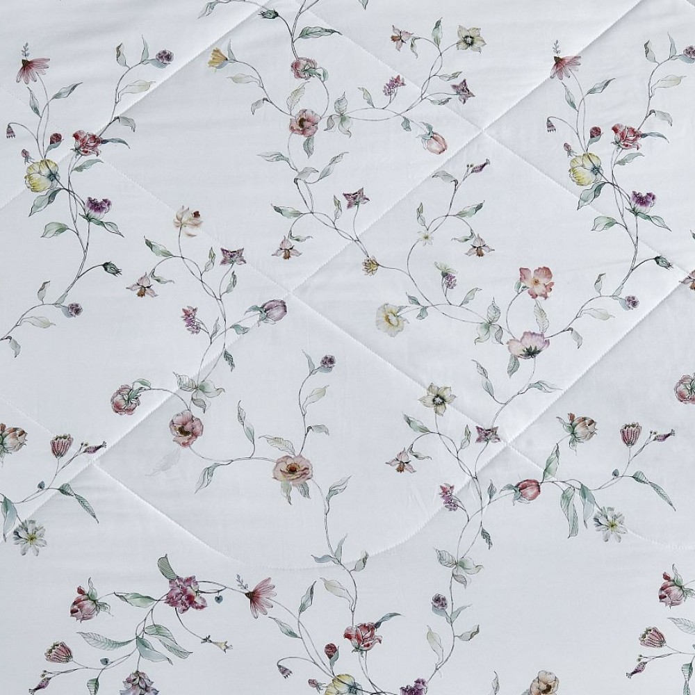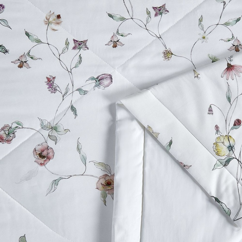 Постельное белье «Taylor» выполнено в белом цвете. Внешняя сторона одеял и наволочек украшены нежным цветочным рисунком. Обратная сторона одеял и простыни выполнены из однотонной ткани-компаньона в белом цвете.