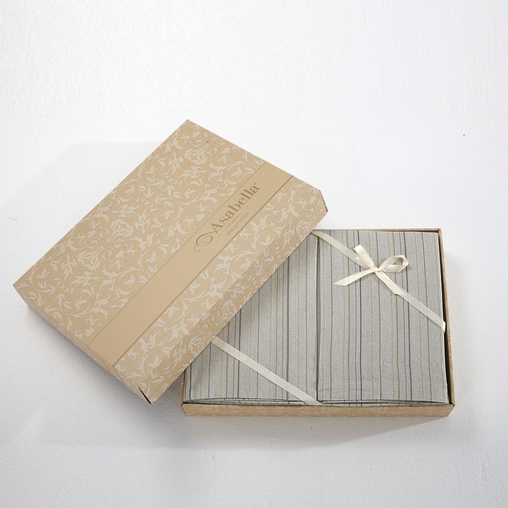 Пододеяльники декорированы "ушками" с трех сторон. Закрываются на скрытую молнию, расположенную внизу пододеяльника. Внутри пододеяльников предусмотрены специальные тесемочки для фиксации одеяла (на одеяле должны быть ответные петли). Эта небольшая деталь сделает использование постельного белья еще комфортнее: одеяло не сбивается в пододеяльнике, и заправлять его становится гораздо удобнее. Наволочки в размере 50х70 см выполнены в оксфордском дизайне - с "ушками" с трех сторон. Наволочки в размере 70х70 см выполнены в классическом дизайне. Все наволочки закрываются методом запаха. Простыня в комплекте свободная (прямая). Комплекты упакованы в подарочную коробку.