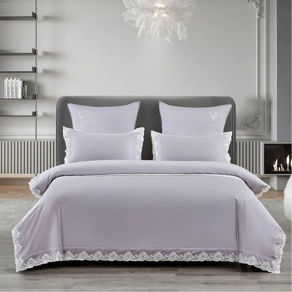 Постельное белье «Viletta» выполнено из нежнейшего струящегося сатина пыльно-лавандового оттенка и украшено белыми кружевными цветами. В составе 61% тенселя и 39% хлопка. Благодаря такому сочетанию ткань приобретает особую нежность, дополнительное сияние и особую изящность. Воздушное кружево как бы продолжает основную ткань. Такой дизайн в премиальном исполнении станет жемчужиной любой спальни и прекрасным подарком родным и близким.