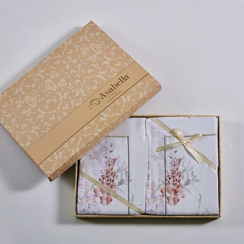 Комплекты постельного белья «Wisteria» из премиальной линейки бренда Asabella выполнены из плотного, невероятно нежного сатина с благородным блеском. Эту линейку отличает высокая плотность ткани и отборный 100% египетский хлопок в составе. Длинные тонкие волокна египетского хлопка дарят ткани шелковистость, гладкость и особый тактильный комфорт. Такое постельное белье будет радовать своих обладателей изысканными тканями долгие годы.