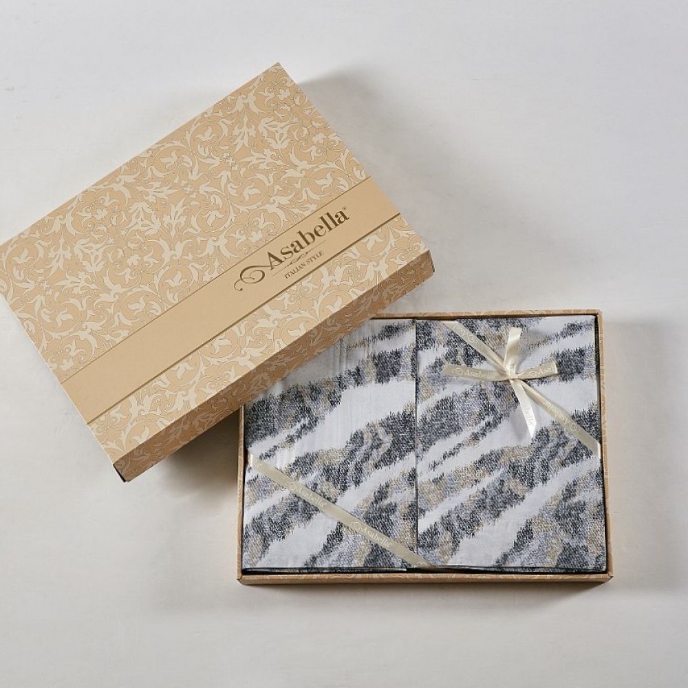 Пододеяльники декорированы "ушками" с трех сторон. Закрываются на скрытую молнию, расположенную внизу пододеяльника. Внутри пододеяльников предусмотрены специальные тесемочки для фиксации одеяла (на одеяле должны быть ответные петли). Эта небольшая деталь сделает использование постельного белья еще комфортнее: одеяло не сбивается в пододеяльнике, и заправлять его становится гораздо удобнее. Наволочки в размере 50х70 см выполнены в оксфордском дизайне - с "ушками" по периметру с трех сторон. Наволочки в размере 70х70 см выполнены в классическом дизайне. Все наволочки закрываются методом запаха. Простыня в комплекте свободная (прямая). Комплекты упакованы в подарочную коробку.