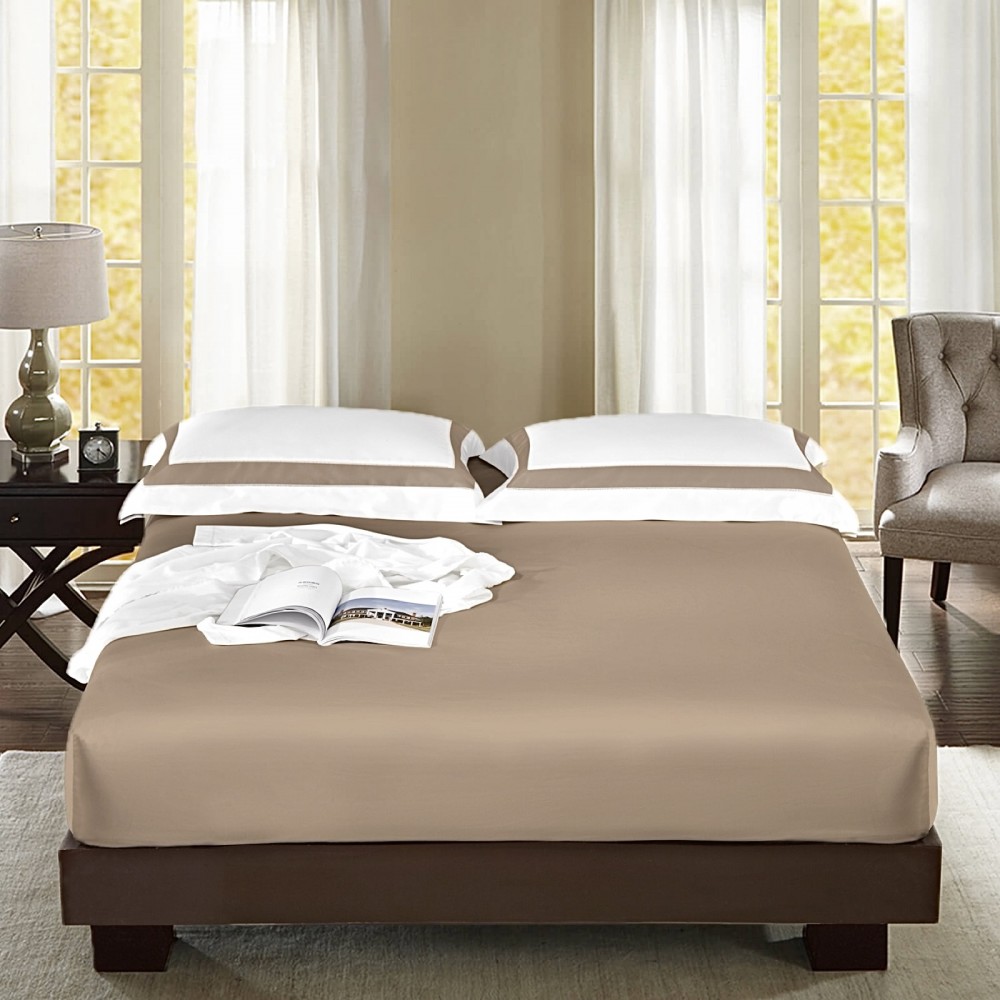 Простыня на резинке «Sharmes» из сатина, состав: 100% хлопок Pima, размер 160х200х40 см, цвет: кофе с молоком.