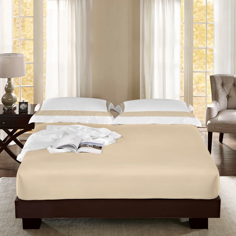 Простыня на резинке «Sharmes», цвет: светло-бежевый (160х200х40 см; сатин: 61% тенсель, 39% хлопок; арт. 9118)